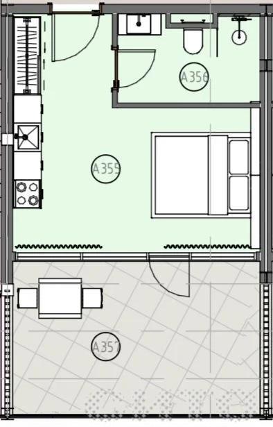 • Студия: 25 м² + терраса 19 м², видовой 3 этаж, панорамное остекление, высота потолка 3,3 м