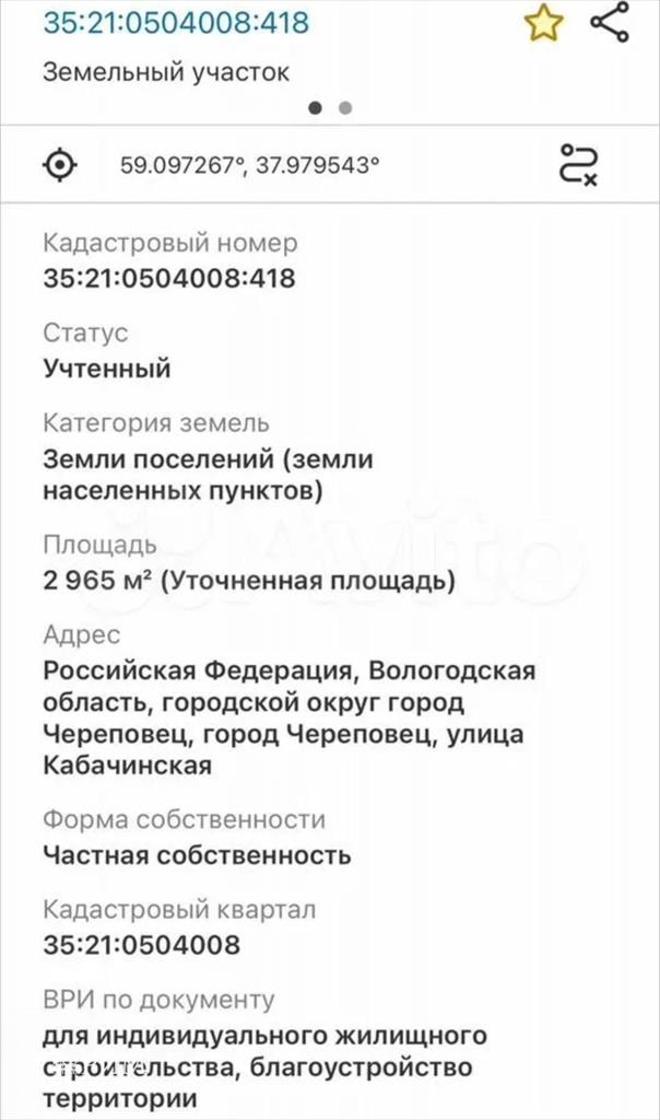 | Земельный участок в Череповце |